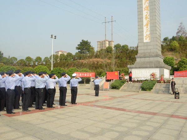 为深切缅怀革命先烈、公安英烈,弘扬公安维护国家安全和社会稳定不怕牺牲奉献精神,进一步凝聚警心、激励斗志,4月3日上午9时,溆浦县公安局在县城灵翠山公园人民英雄纪念碑广场,举行“五溪不会忘记”缅怀纪念革命先烈、公安英烈活动既四月份主题党日活动,县公安局党委副书记、政委强龙等在家局领导,各党支部支部书记、局机关各部门教导员、交警大队、巡警大队和消防大队部分同志以及入党积极分子共70余人参加了活动,县公安局党委委员、政工室主任、侦查中心主任舒澄主持活动。