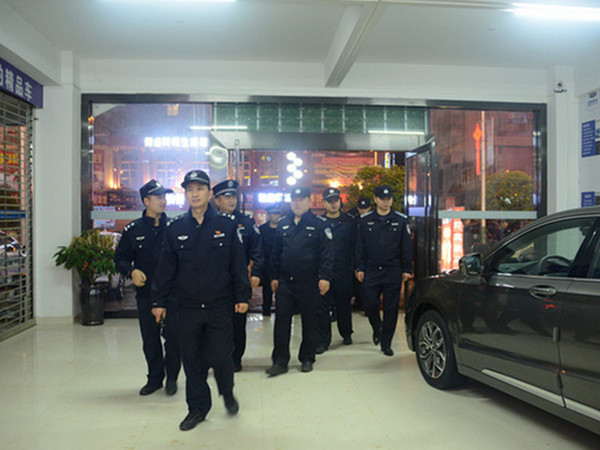 5月28日晚上,在溆浦县公安局党委的统一部署安排下,溆浦县公安局治安防控中心治安组联合防控中心巡特警大队、侦查中心禁毒组、城区三所共抽调百余警力集中开展清查城区重点场所的“黄赌毒”行动,整治丑恶顽症。行动中,对容易滋生“黄赌毒”违法犯罪活动的御景湾养生会所、康龙养生会所、半岛洗浴中心、龙腾养生会所等场所进行拉网式清查,对临街店面摆放的赌博机,予以当场销毁。